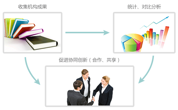 (1) 大数据分析系统的集成:我们将集成自由知识产权的数据分析系统,利用科研之友的大数据,从统计、对比、趋势、合作4个维度了解科研单位的科研实力和辅助决策。